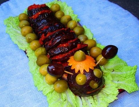 Ингредиенты:Баклажаны - 2 шт.----------------------Маслины - 70 г.----------------------Салатные листья - 4-5...