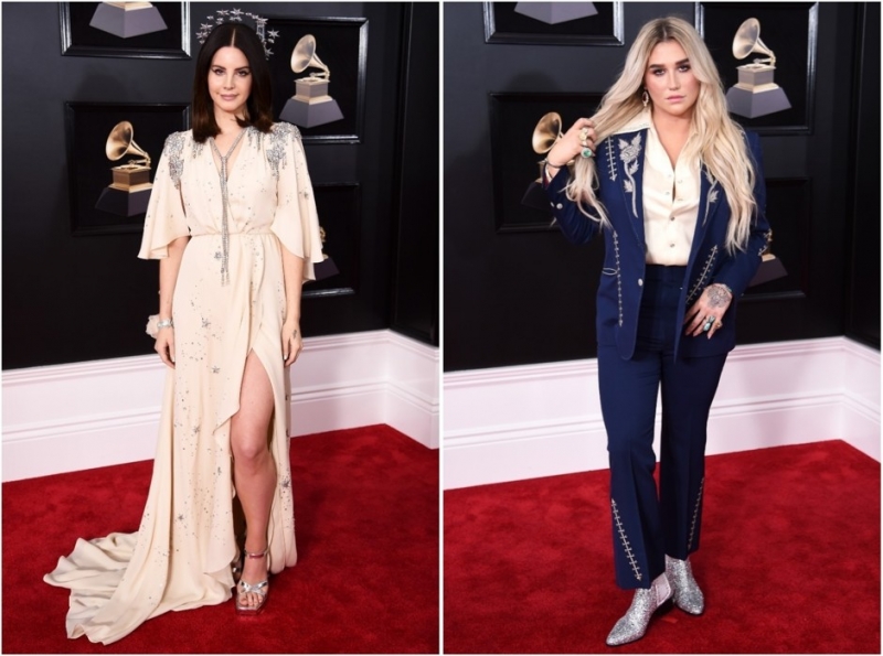 Лана Дель Рей и КешаНеобычные наряды выбрали и другие номинантки: Лана Дель Рей и Кеша. 31-летняя Лана блистала на красной дорожке в платье Gucci, а 30-летняя Кеша выбрала костюм в ковбойском стиле от Nudie’s Rodeo Tailors.
