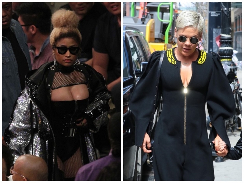 Певицы Ники Минаж и Пинк на этой неделе были королевами ролевых игр. Доминирование у девушек в крови, что они и подчеркнули с помощью своих черных нарядов с соблазнительным декольте. Без акцента на плечи тоже не обошлось (может быть, там спрятаны плети?). В общем, Кристиан Грей был бы доволен, что его дело живет!