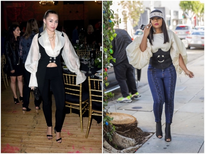 Майли Сайрус на вечере My Friend's Place 30th Anniversary Gala (слева); Ашанти во время шопинга в Западном Голливуде (справа)Актриса Элизабет Олсен (кстати, ее сестры-близняшки тоже частенько совершают модные грешки) решила переодеться в супергероиню, которая легким движение руки готова поднять в воздух одновременно несколько машин и кинуть их в лицо злодею. Благодарим артистку за смелый выбор, который, к сожалению, не сыграл в пользу ее фигуры.