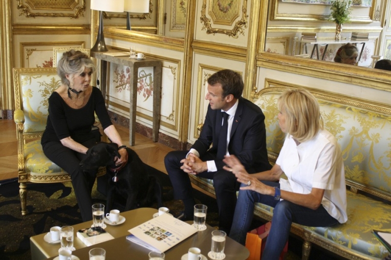 Брижит Бардо, Эммануэль и Брижит МакронПовесткой встречи стали проблемы, связанные с животными. Бардо, которая является основательницей фонда защиты животных, ранее критиковала главу государства из-за того, что он бездействует в этой сфере. Теперь ее мнение о президенте изменилось.