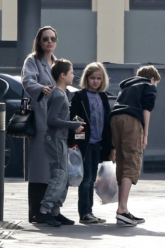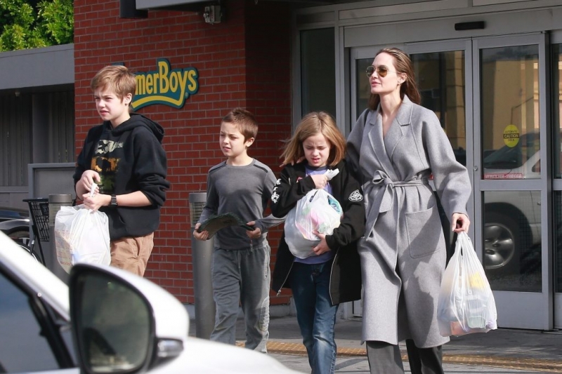 Кстати, дети помогали Анджелине нести пакеты с покупками. А Джоли без стеснения ходила по магазинам без макияжа. Очень хороша!