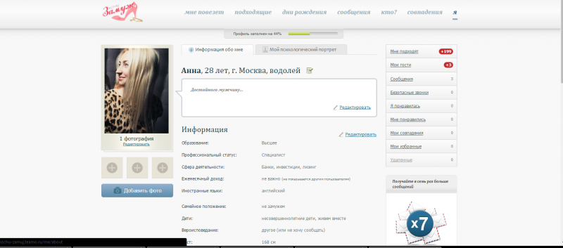 Сферу деятельности, увлечения, образование, доход и так далее — заполняй обдуманно, честно, немного с юмором (если у тебя с этим чувством все в порядке). Немного юмора не повредит, а наоборот — подчеркнет твою индивидуальность. Хозяйки в меру веселых и забавных анкет, как правило, особенно пользуются популярностью, ведь в этом присутствует определенная легкость.