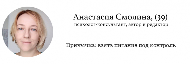 Следить за питанием никогда не было моей целью, но я веду сидячий образ жизни, и однажды наступил момент, когда устранить вредные привычки в еде стало необходимо: они стали сказываться и на здоровье, и на внешнем виде. Хотелось быть в форме, спокойно идти, например, на презентацию, а не страдать от того, что будешь потом плохо выглядеть на фото.