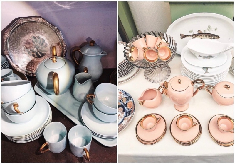 Чайные сервизы легко распознать: левый из тонкого фарфора, начала 30-х годов, с деликатной матовой позолотой, стоимость 1200 евро. А розовый — керамический, уже 50-х годов, стоит около 300 евро.