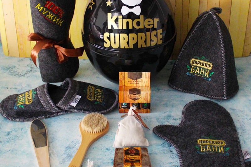 Объявляем банный день. А в компаньоны вашему мужчине пророчим веник (его, правда, придется «нарвать» в лесу), шапочку из войлока и коврик с вышивкой. Комплект хорошо обитает как в русской бане, так и в сухой финской сауне.