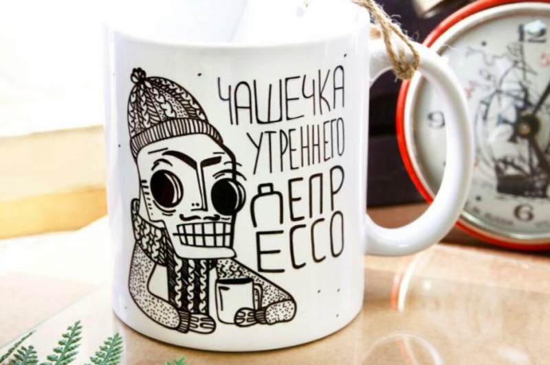 Кружек много не бывает, а кофе или чая – тем более. Пусть эта кружка с забавным рисунком и надписью поднимает настроение вашему избраннику каждый день, когда он делает из нее живительный глоток.