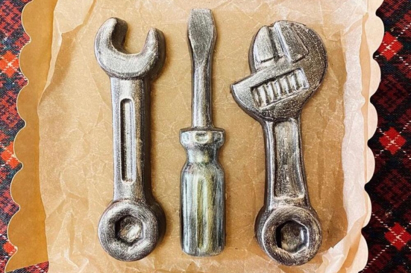 Пусть в праздник ваш любимый отдохнет и впервые воспользуется гаечным ключом и отверткой не по их прямому назначению. Этот подарок он с удовольствием съест и наверняка поделится с самыми близкими.
