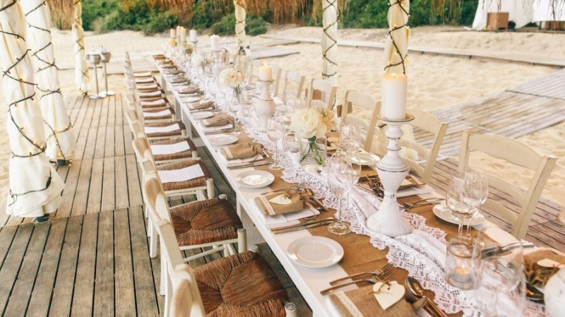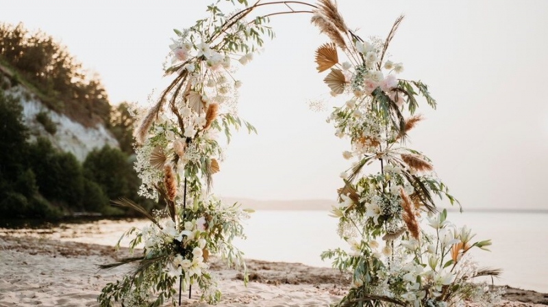 1. Пляж. Песок, шум морских волн и легкий бриз создадут идеальную атмосферу для бохо-свадьбы. Декорированные деревянные дуги, макраме и природные материалы хорошо впишутся в пространство и добавят нотки романтики.