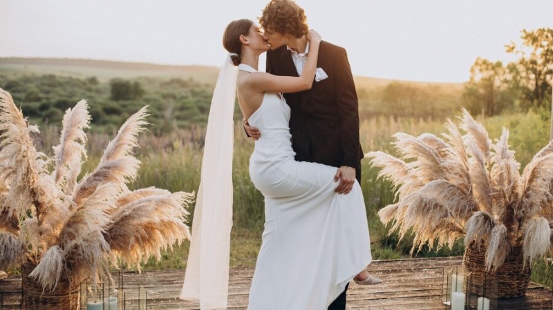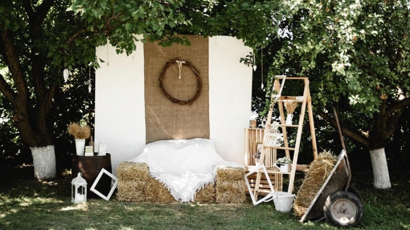 Создайте уютные уголки для отдыха.Источник: Freepik.comДекор в деревенском стиле будет уместен.Источник: Freepik.comСвадебные наряды молодоженов