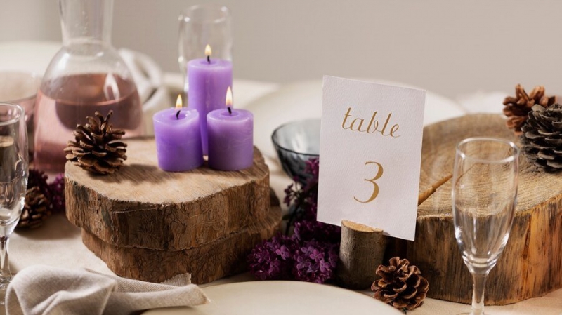 Свечи на столах подчеркнут тематику мероприятия.Источник: Freepik.comДекорируйте стол ветвями, цветами, деревом.Источник: Freepik.comПриродные материалы подчеркнут стиль бохо.Источник: Freepik.com5. Свадебная флористика